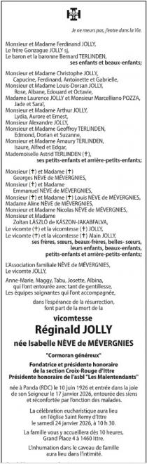 Faire part du décès d'Isabelle Nève de Mévergnies - Jolly