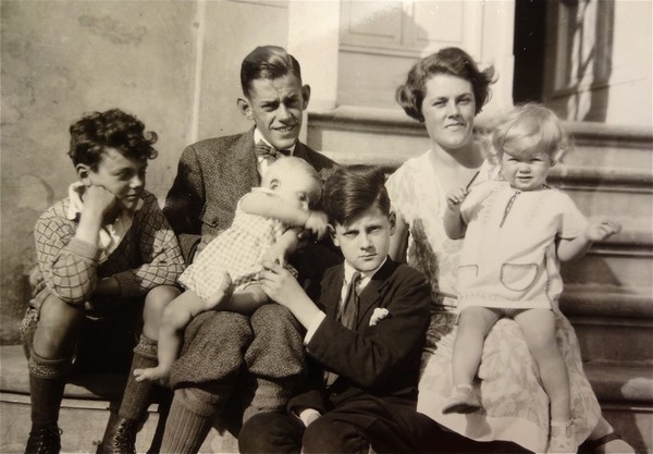 Gerard, Pierre, Albert, Francy Greindl et ses deux aînés : Isabelle et Georges en 1928