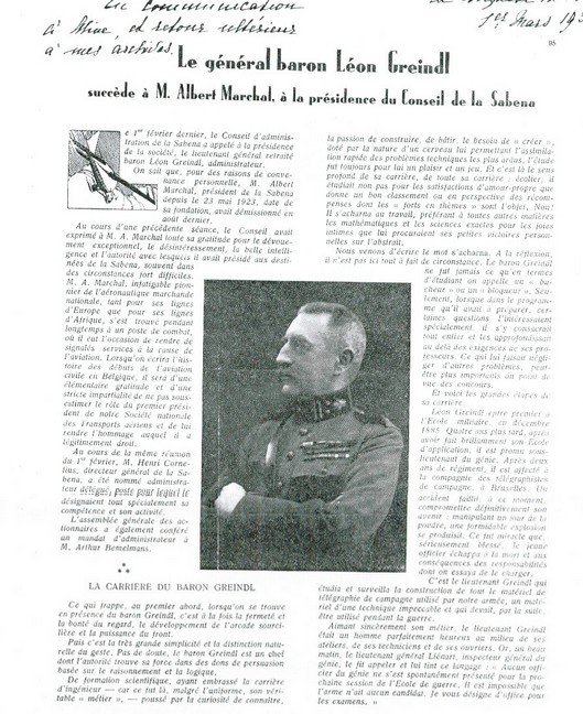 Léon Greindl préside la Sabena
