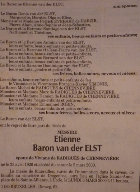 Faire part du décès d'Etienne van der Elst